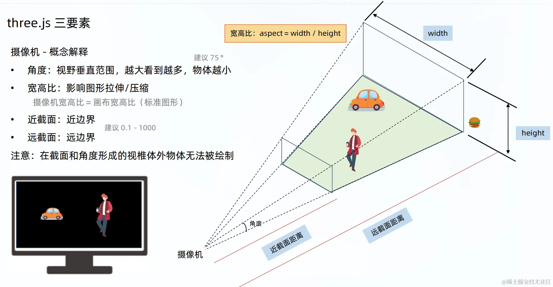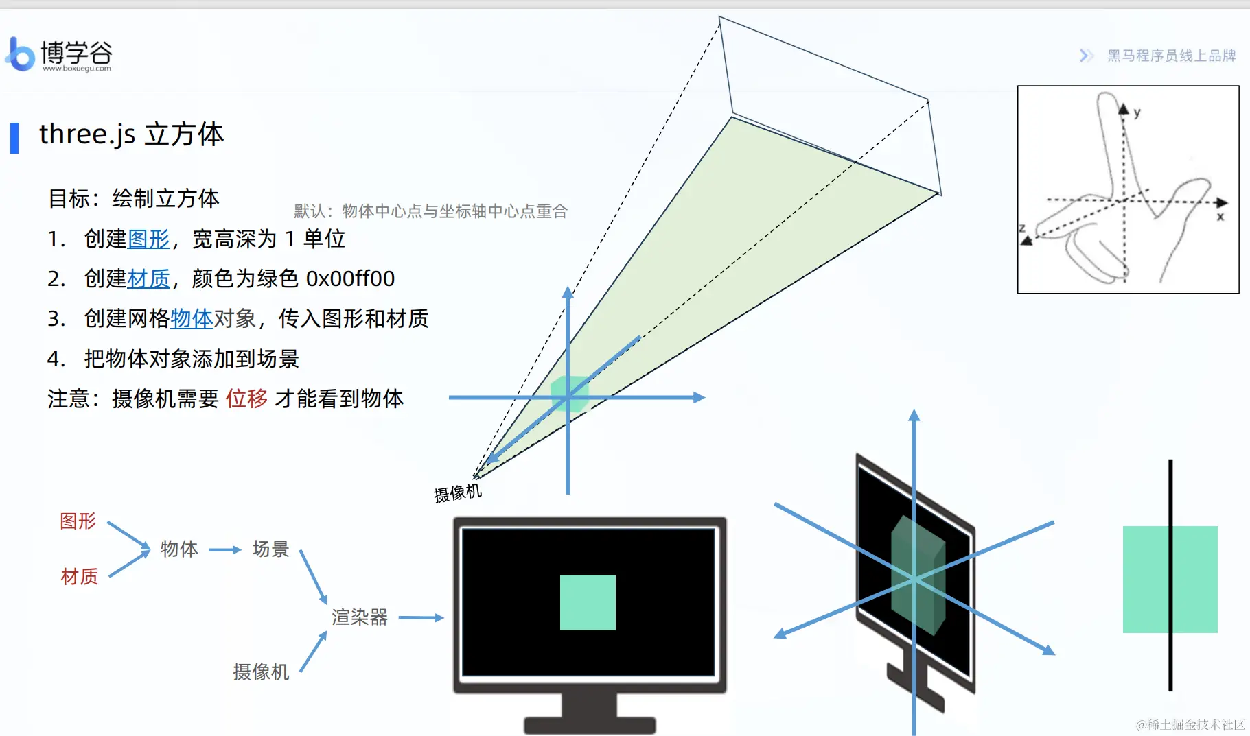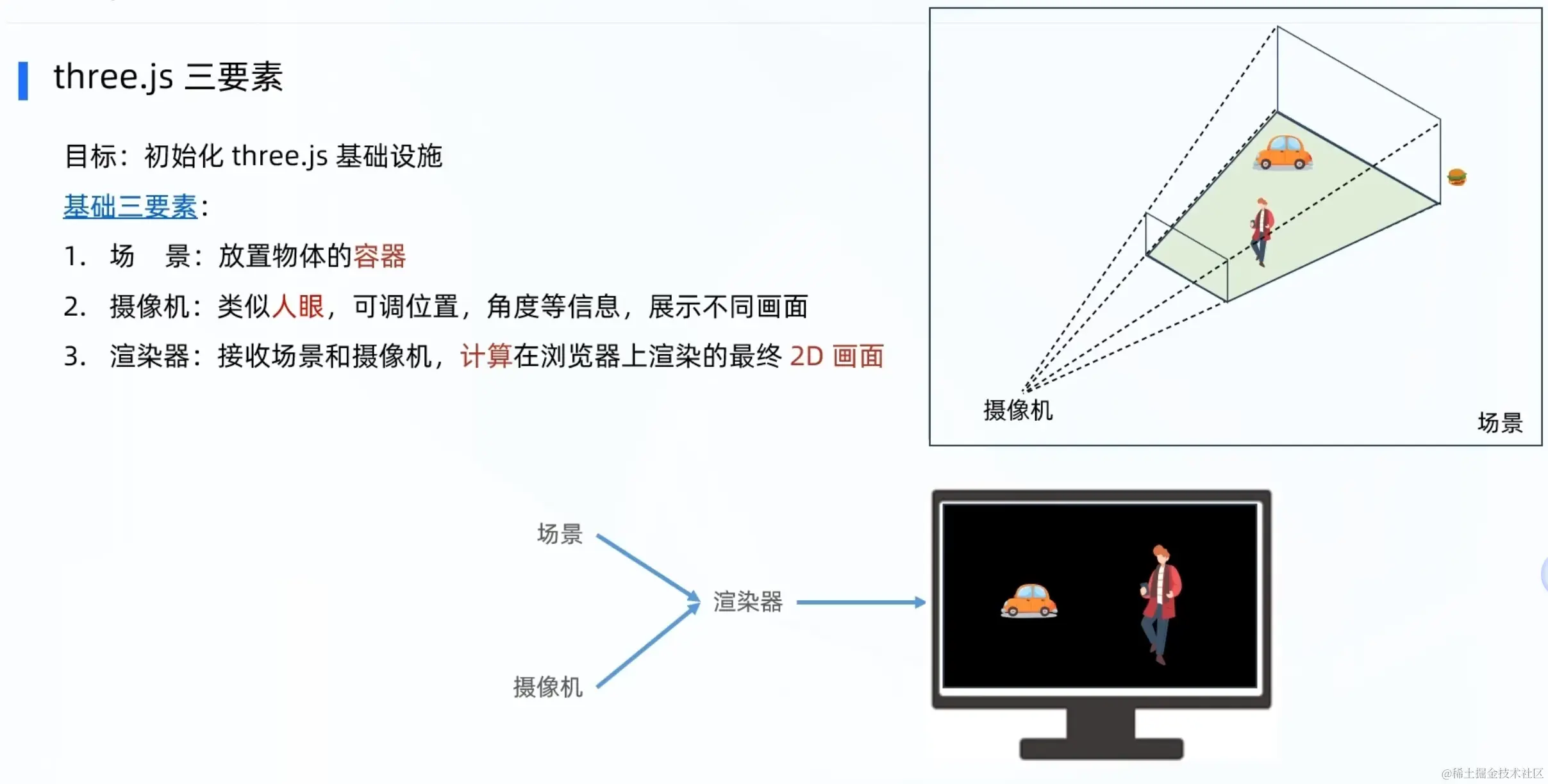 场景(scene) 摄像机(camera) 渲染器(renderer)