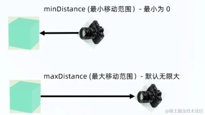 你能够将相机向外移动多少(仅适用于PerspectiveCamera),其默认值为Infinity。
