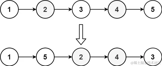 # 就是先把中间节点到末尾这一段反转,然后再先原链表再反转后的一个一个交叉连接起来