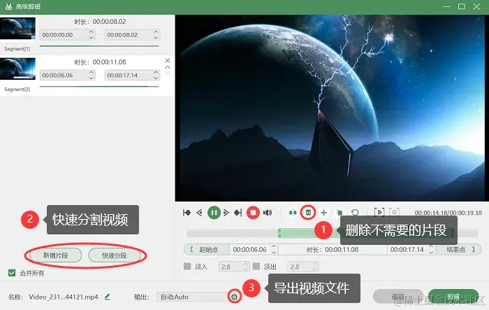 步骤3:开始录制后,您可以随时暂停录制,录制结束后视频会弹出预览,我们可以进入 “高级剪辑” 页面,对视频进行更多操作。