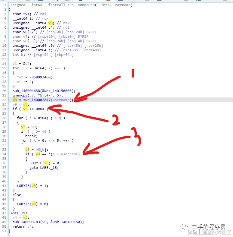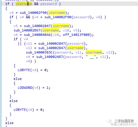 这段代码里面 sub_140002F90 先对 username 做了处理,看看里面: