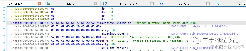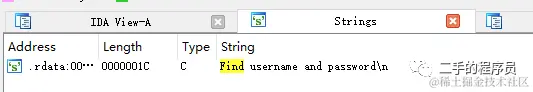 我们使用字符串窗口,找到程序中的字符串: