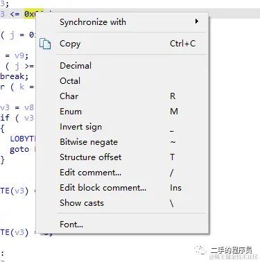 ****:在反编译后伪代码的界面中隐藏/显示变量和函数的类型描述,有时候变量特别多的时候隐藏掉类型描述看起来会轻松很多