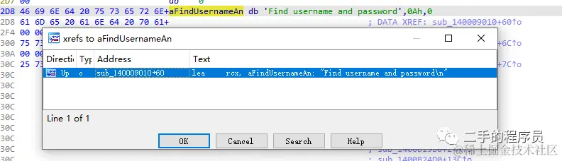 双击,找到字符串位置,按 X 键,找到引用这个字符串的位置: