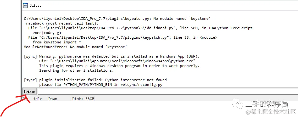 一切搞定之后,打开 ida pro,可以看到一个 python 窗口: