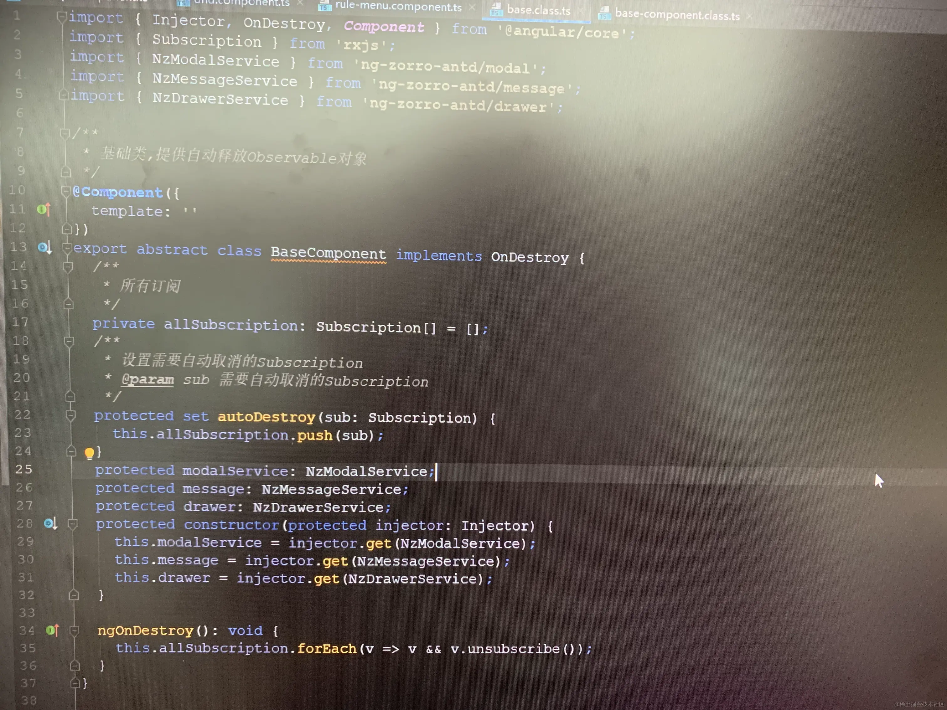 1、将每个组件或者服务都会用到的modal、message服务在基类中引入;