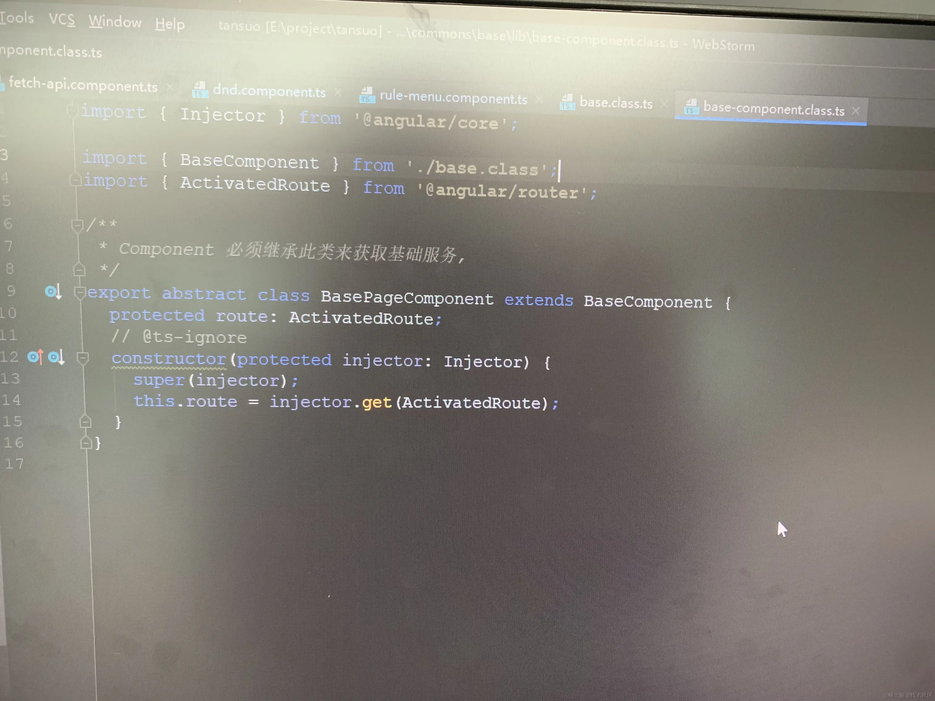 二、创建pageBase.component.ts,这个文件继承base基类,必须被所有的组件继承,可以在里面添加组件都能用到的一些服务,比如获取路由参数的服务