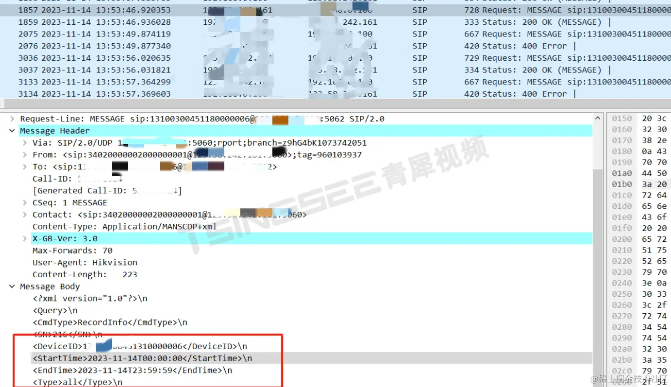 1、首先技术人员进行抓包排查问题,通过数据包可以看到上级发送了recordinfo消息,但是EasyNVR并未回复信息且也没上报录像到上级;