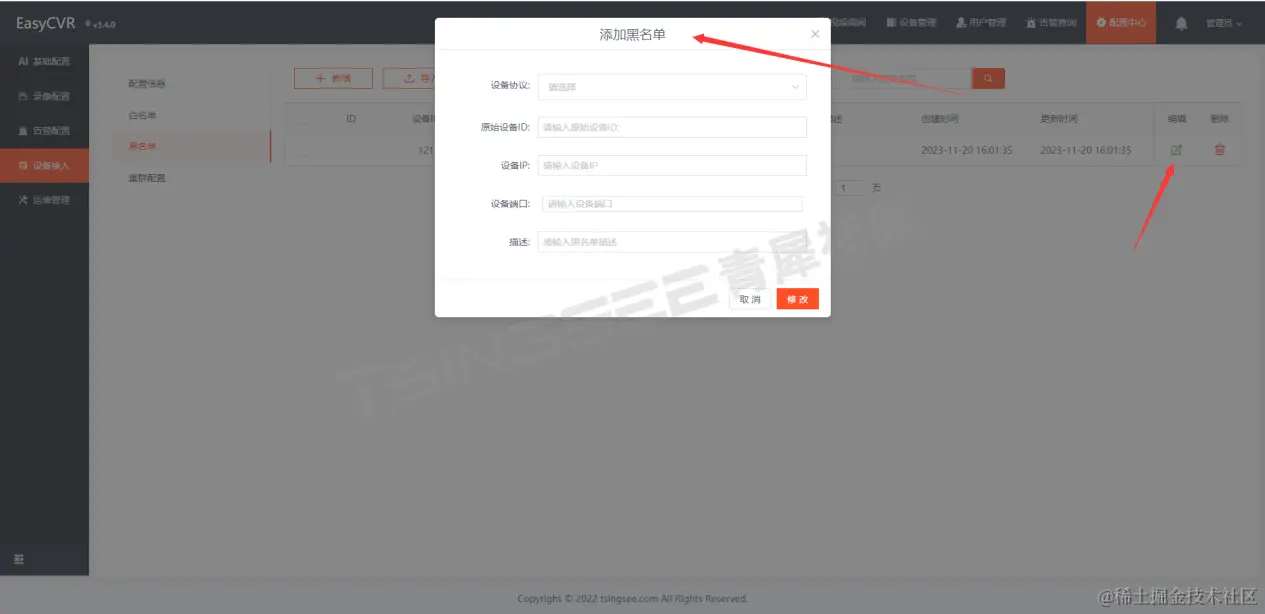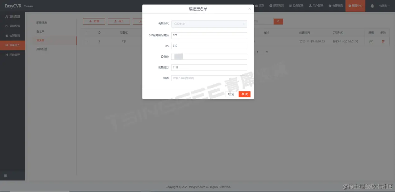 有用户反馈:EasyCVR在使用现场时,黑名单功能只能新建,无法编辑,如下图: