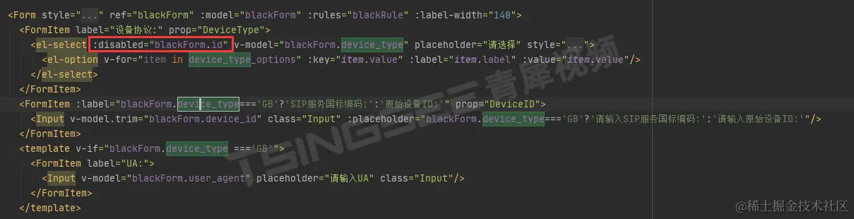 3、并且在编辑的时,设备协议是无法编辑的,于是增加代码;