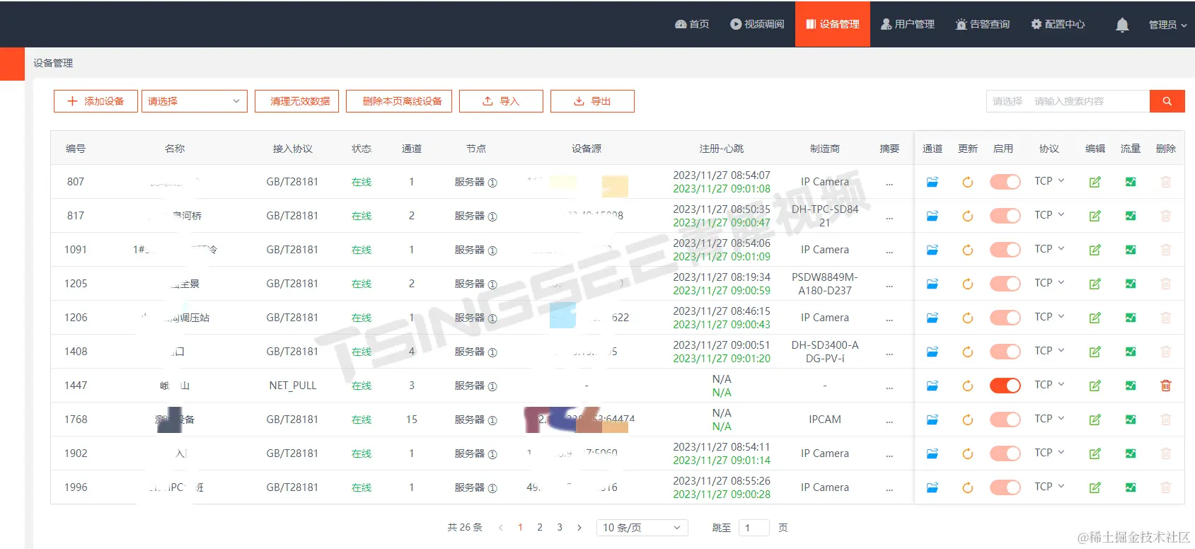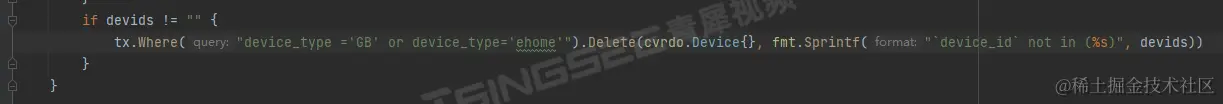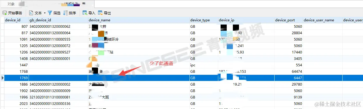 2、随后检测代码发现查询时是通过管理t_devices GB设备标一起的,但t_devices GB设备表没有此通道,而是过滤了该通道;