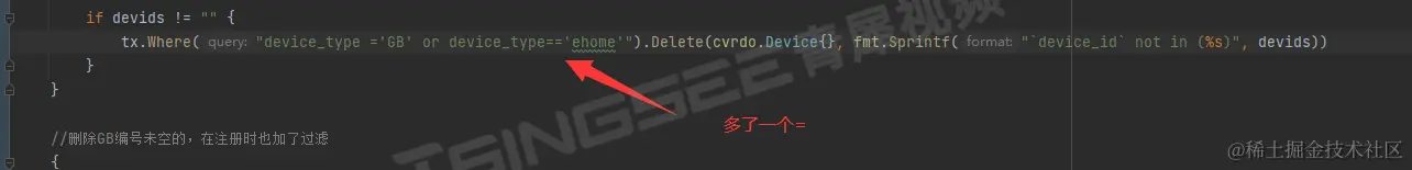 3、找出原因为在清理无用数据时,清理t_devices 表sql语句错误所导致“=”没有正常清理掉;