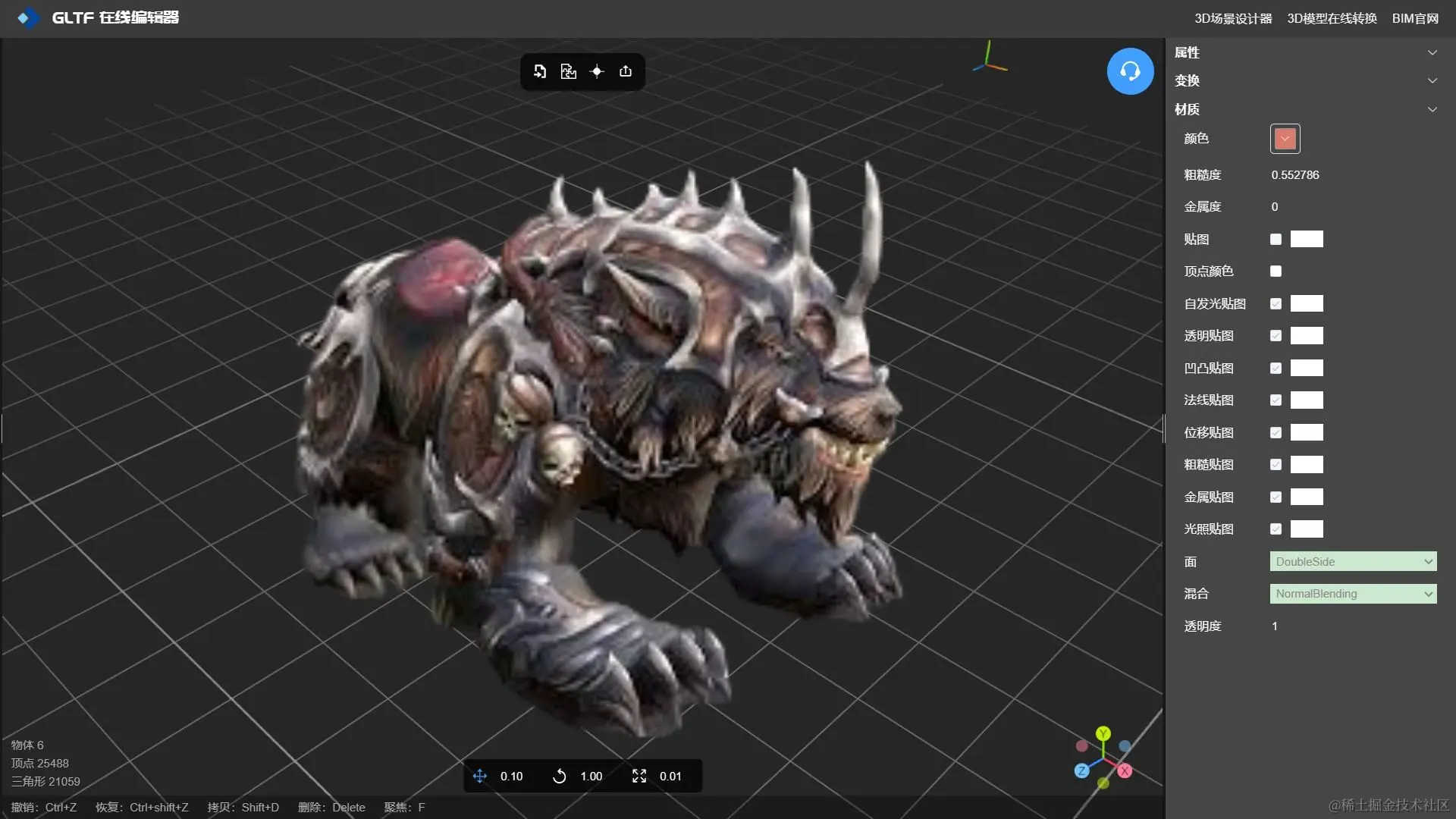 除了以上的GLTF材质编辑器之外, 还可以尝试另外一款工具:DreamTexture.js自动纹理化开发包。