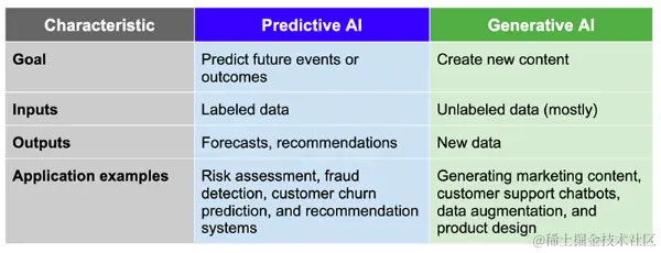 不可否认,生成式人工智能和预测式人工智能是两种强大的AI类型,它们在商业和其他领域都有着广泛的应用。虽然都使用机器学习从数据中获取“知识”,但它们的学习方式和目标有所不同: