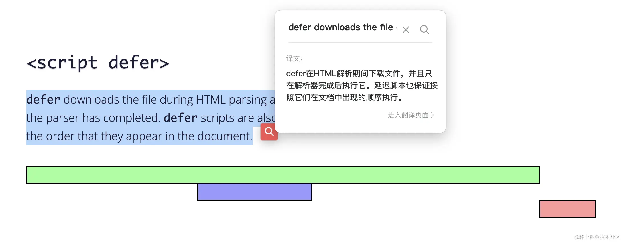每一个 defer 属性的脚本都是在页面解析完毕之后,按照原本的顺序执行