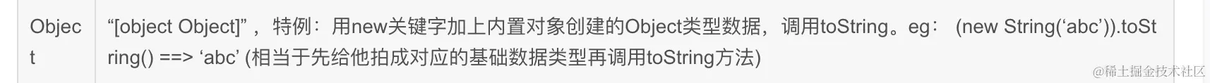 String(),null:“null”,undefined:“undefined”,其他调用toString()方法