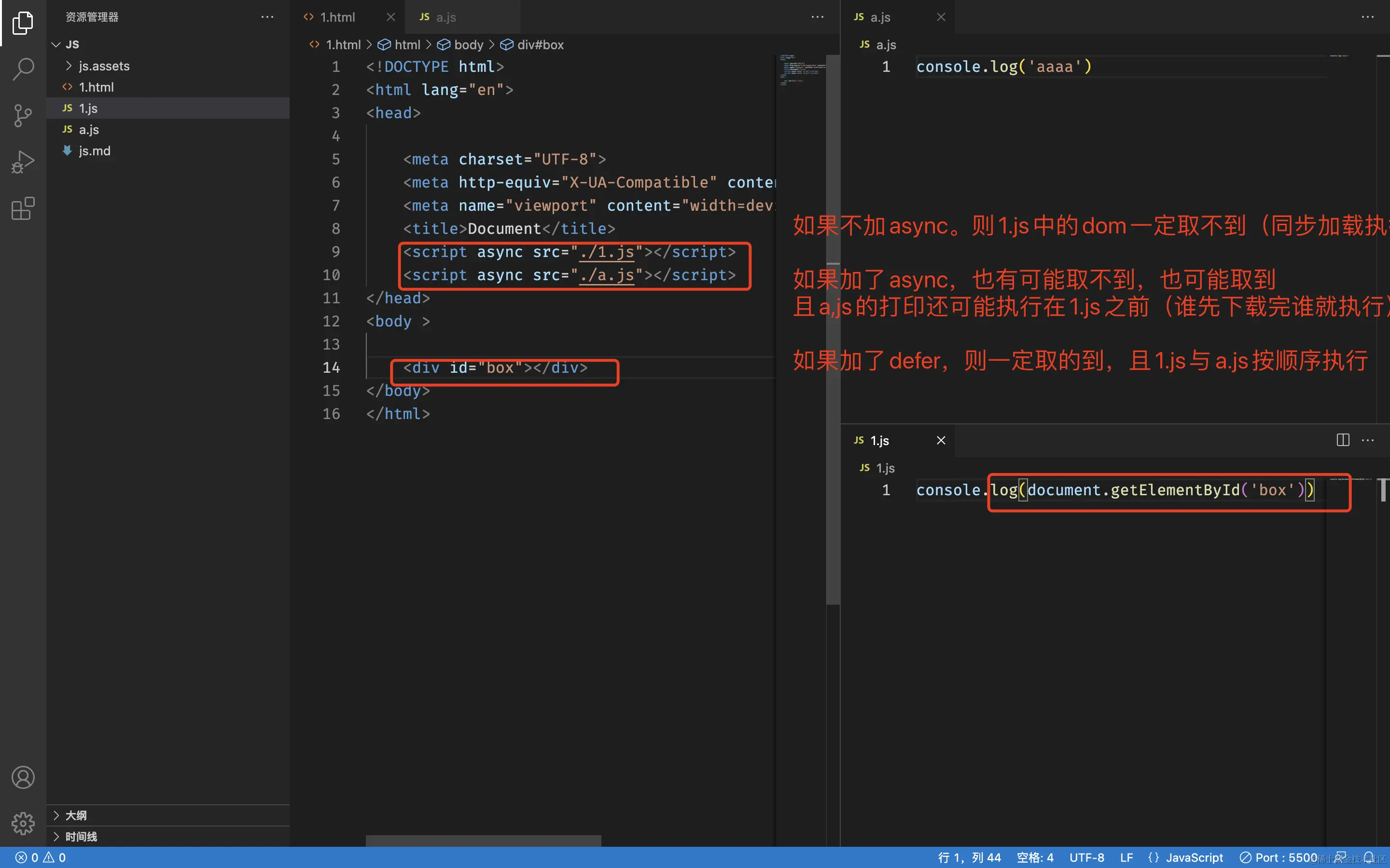 对于 inline 的 script 无效(只适用有src的外部 js) <script async src="./1.js"></script>