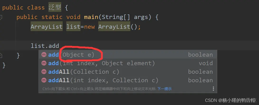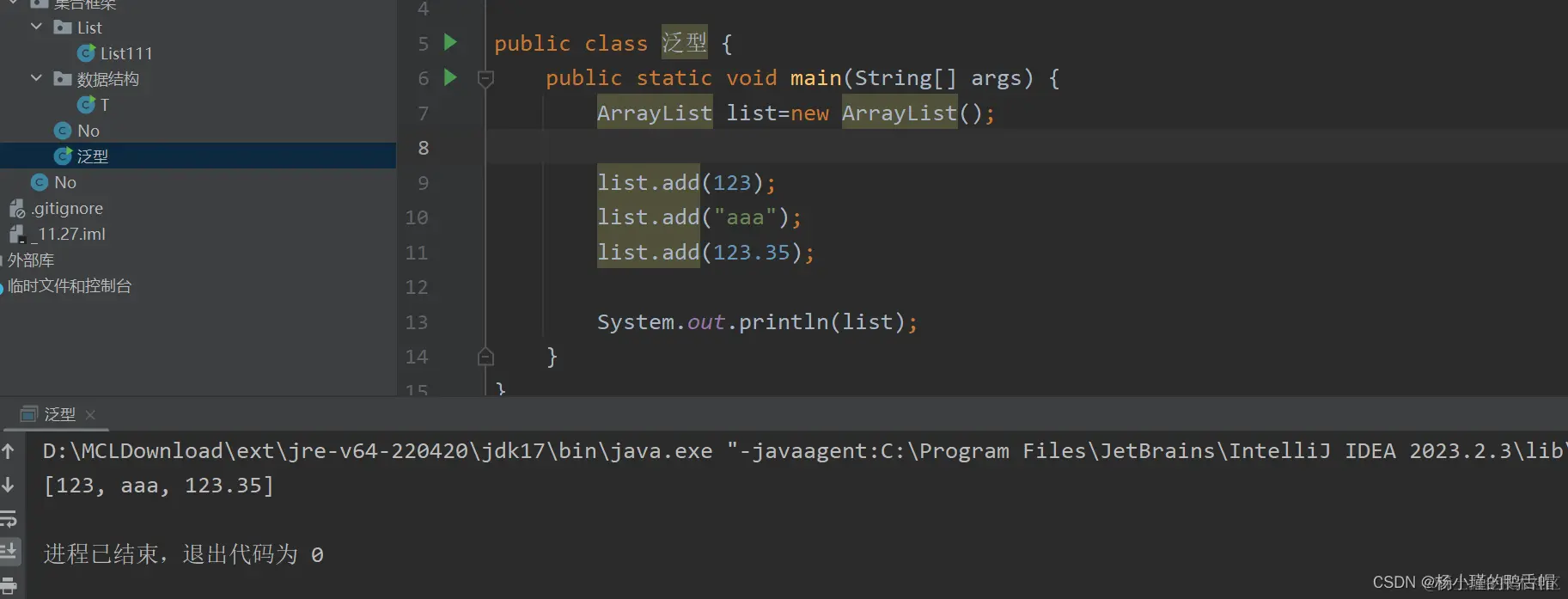 我们发现此时里面是Object类 也就是说可以添加所有类型的数据