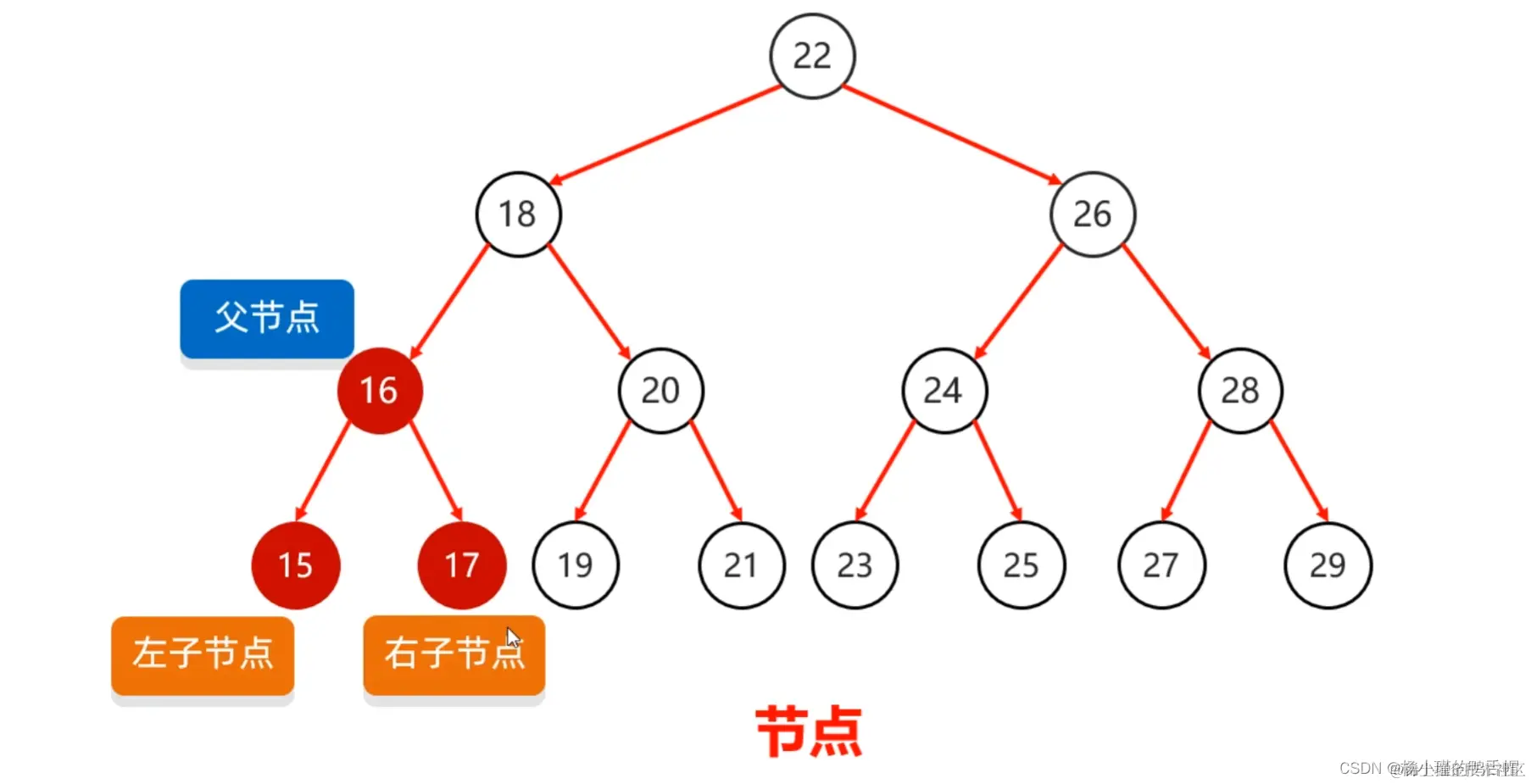 对于26及26以下的结构叫做根节点的右子树
