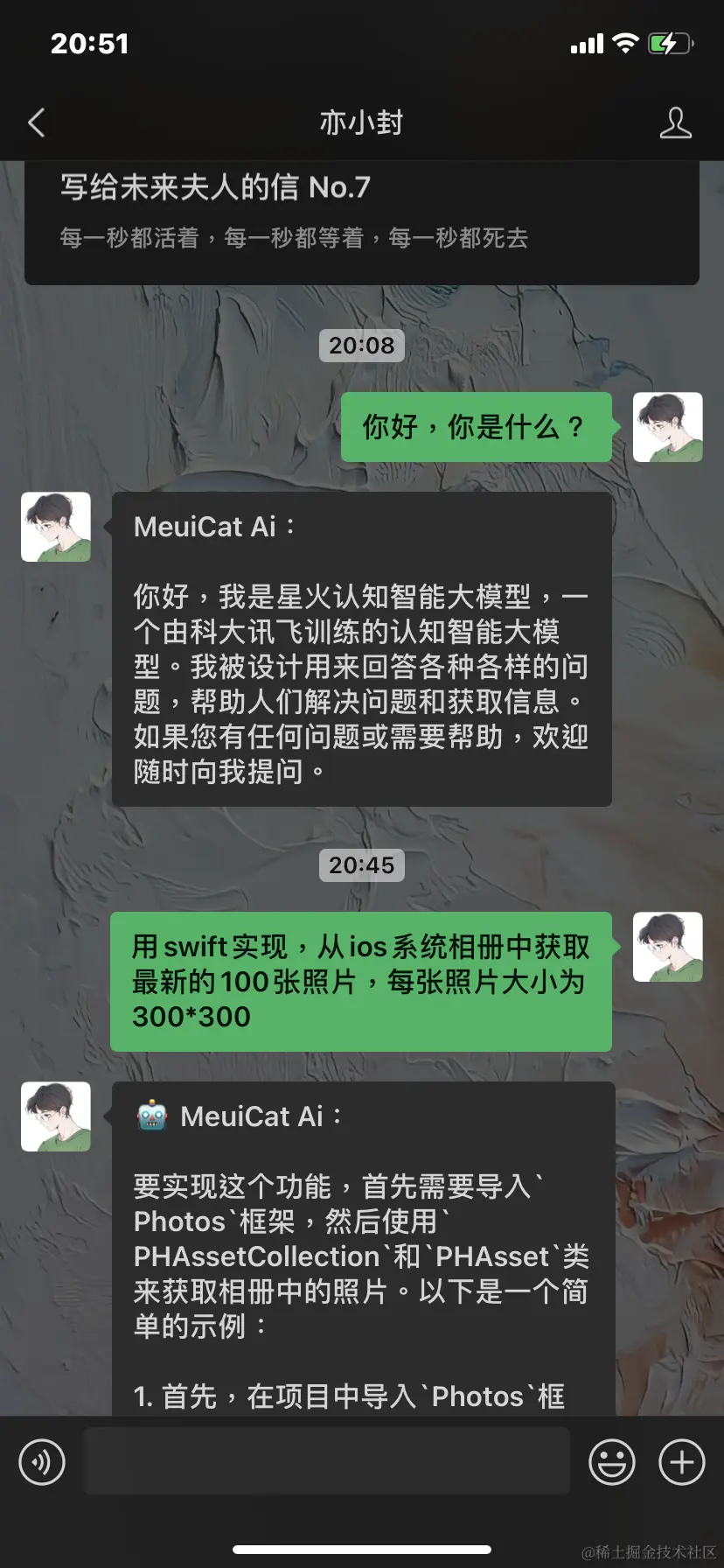 "爱吃肉的猫": "我是一款基于星火大模型3.0的智能回复助手,这是我的开发者:亦小封,以及他的博客:爱吃肉的猫(meuicat.com),你可以直接给我发送你想知道的问题,我相信能给到你满意的答复!"