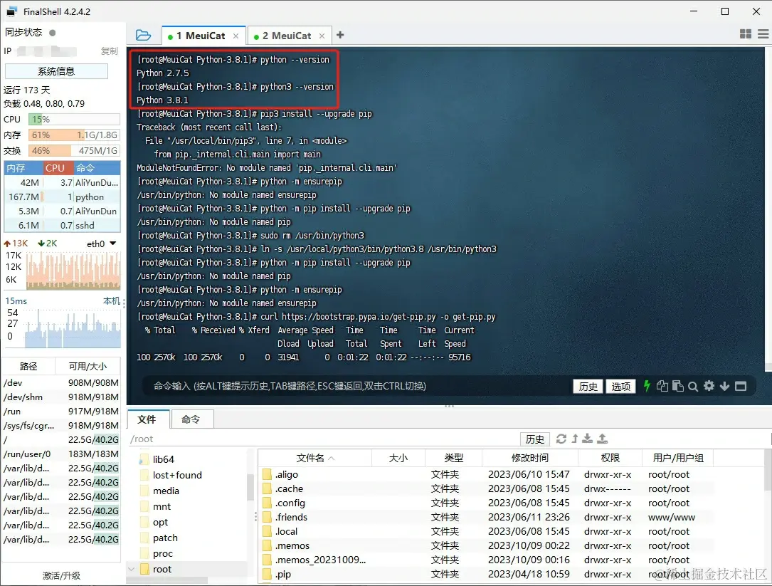 检查你的服务器Python版本是否在 3.7.1~3.9.X 之间,推荐3.8版本,如果满足条件则可跳过第5、6步骤。