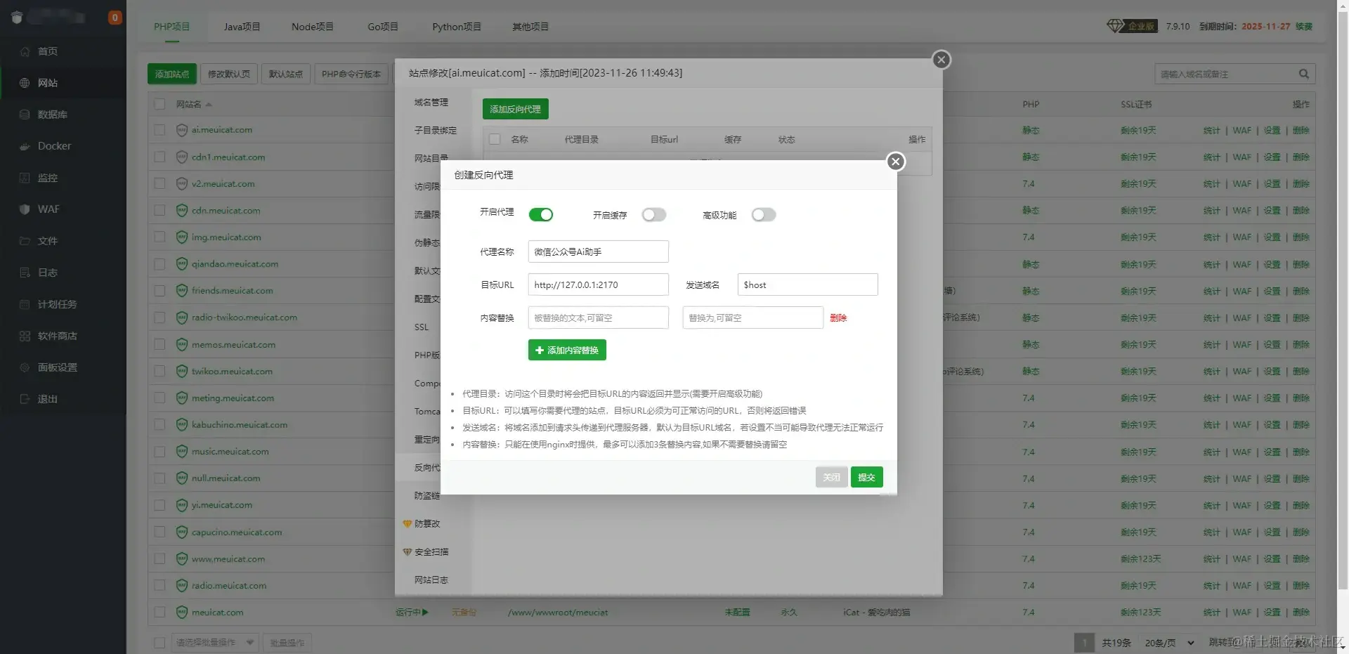 反向代理进行添加你所需要映射的端口,写法为:127.0.0.1:端口号