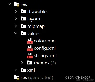 res/values目录下创建一个资源文件,比如config.xml。这个目录是专门用来存放资源文件的,其中values是一个常见的资源文件目录。