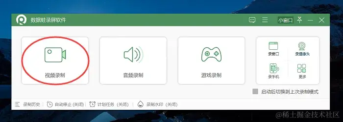 步骤1:前往官网下载并安装相应版本的数据蛙录屏软件,安装完成后,打开软件进入主界面,在这里可以看见多种录制模式,录制视频推荐使用视频录制模式。