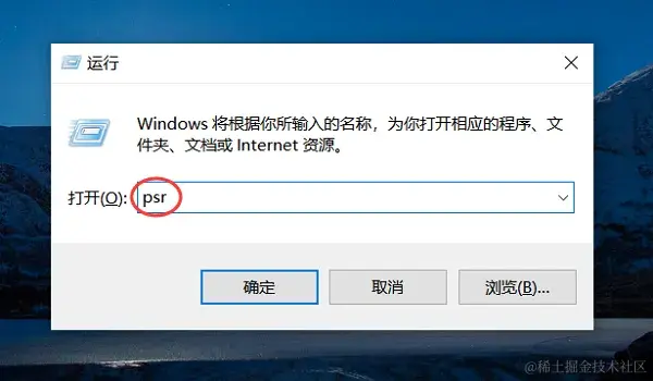 步骤1:使用 “Win + R” 快捷键打开运行窗口,输入 “psr” ,点击 “确定” 。