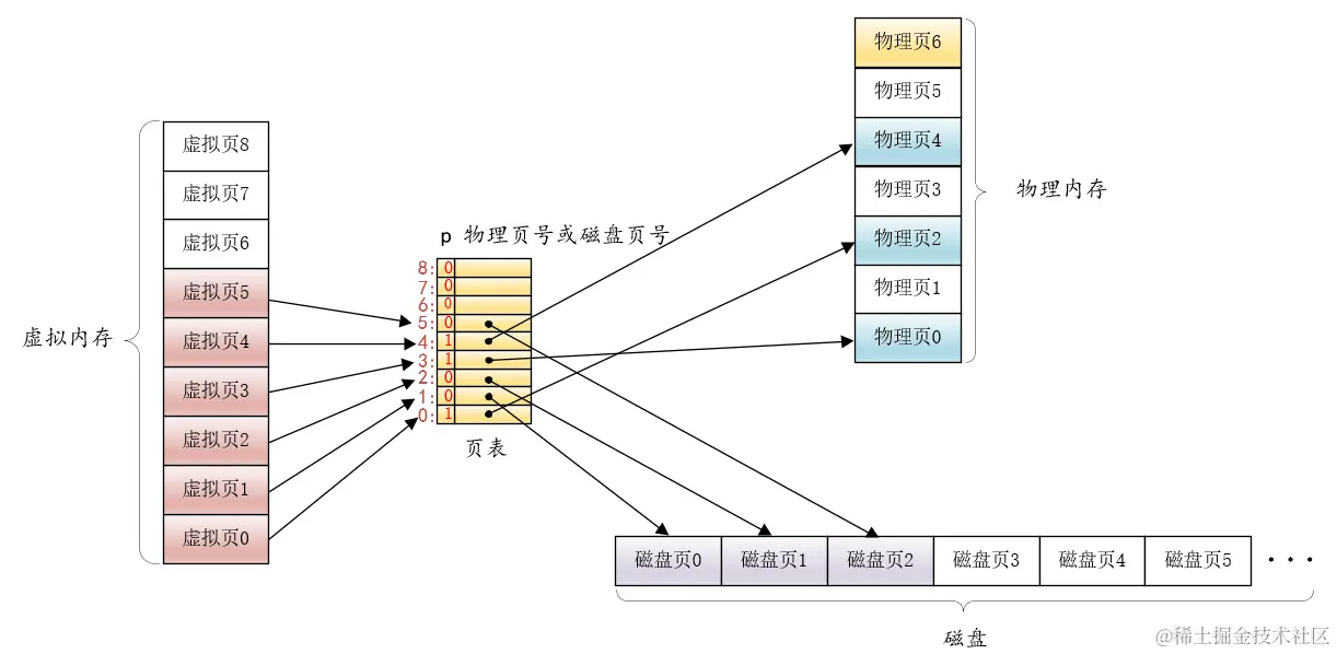当CPU执行某条指令时,该指令需要访问被映射到磁盘页的虚拟页,CPU就会发现该虚拟页相应的页表项的P属性为0,即该虚拟页其实被映射到了磁盘页,此时可以从页表项中获取到磁盘页的位置,然后将相应的磁盘页加载到物理内存,并修改页表。之后再重新执行需要访问该虚拟页的指令。