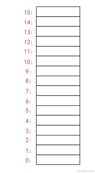 ,上图展示了一个拥有16个存储单元的内存示意图。