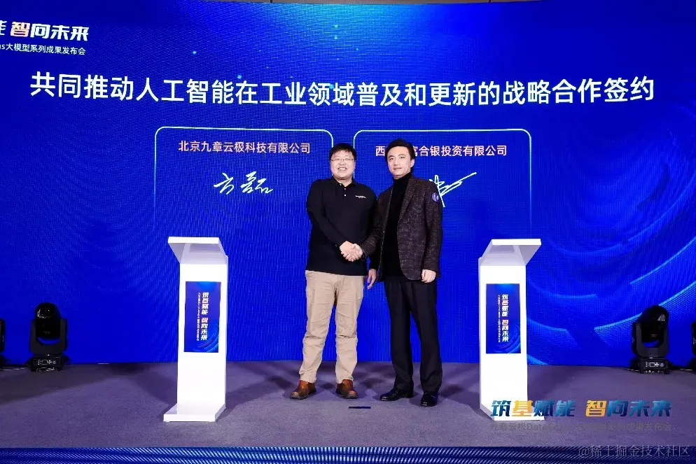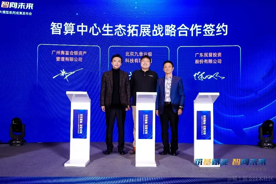 11月21日,在「筑基赋能 智向未来」九章云极DataCanvas大模型系列成果发布会上,九章云极DataCanvas公司与人工智能产业链上下游合作伙伴广东民营投资股份有限公司(以下简称“粤民投”)、西藏赛富合银投资有限公司(以下简称“西藏赛富”)、广州赛富合银资产管理有限公司(以下简称“赛富资管”),以及国内知名自研高端GPU芯片及解决方案提供商,正式签订三大战略合作,提速AI软硬件自主创新、工业领域AI技术规模化应用和国产化智能算力建设,实现公司“算法+算力”一体化服务生态战略进阶!
