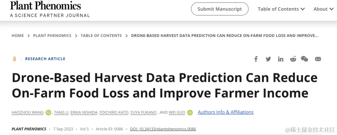这一成果已发表于「Plant Phenomics」
