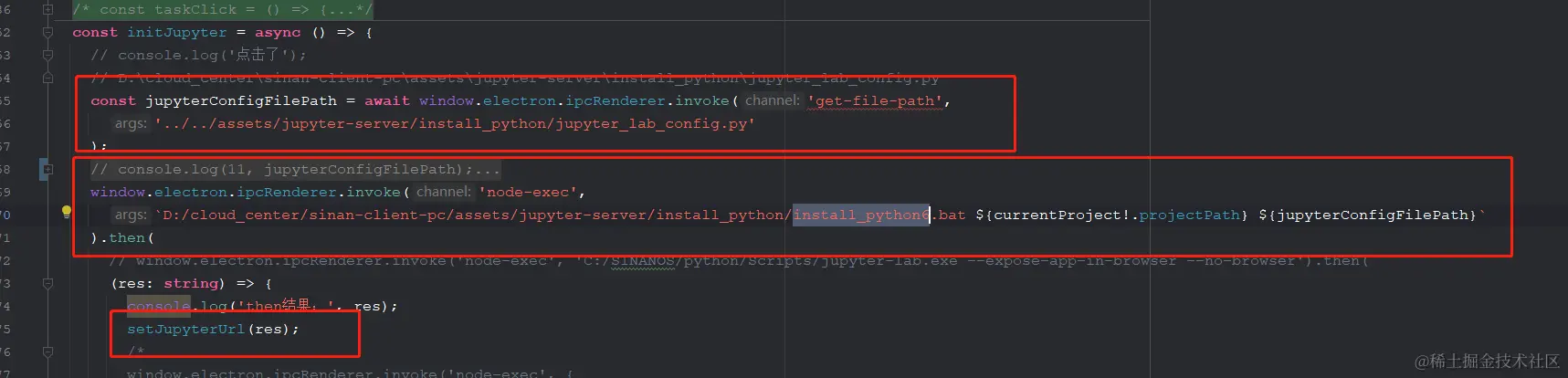 进入正题:我们做的是一个桌面应用,要把jupyter环境放到我们的应用中,不使用 用户自己电脑上的jupyter,把jupyter 文件放到我们的项目中。这里需要运维给你脚本,我们通过前端执行脚本命令,拿到jupyter执行之后启用jupyter的连接地址就可以了,记住是带有 token 的,和运维沟通好。