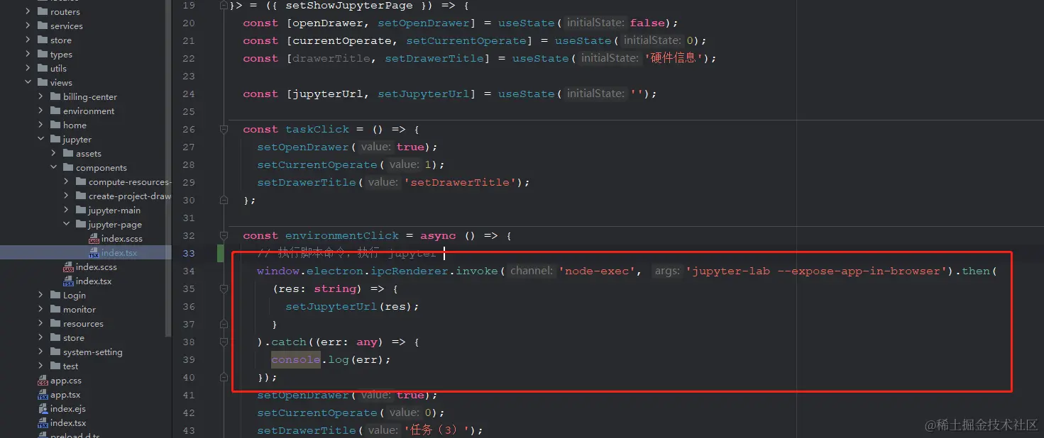 现在需要做一件事,就是在我们的应用中执行脚本命令 jupyter-lab 然后启动我们的 jupyter,再嵌入到我们的应用中,
