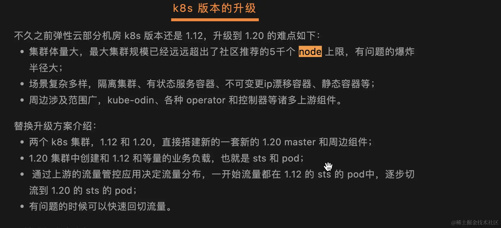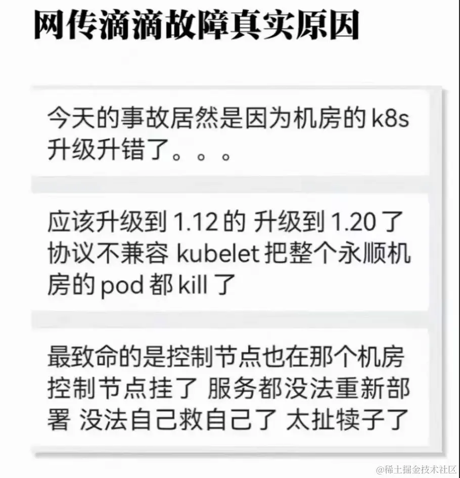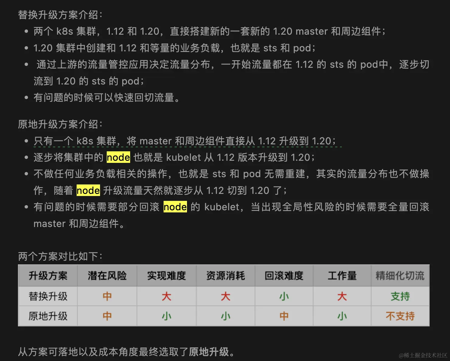 虽然滴滴有能力基于K8S二次开发,但是由于版本跨度较大,细节点较多,原地升级风险我觉得比替换升级