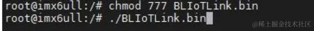 先给予安装包可执行权限,在命令行上输入 chmod 777 BLIoTLink.bin,如下图所示