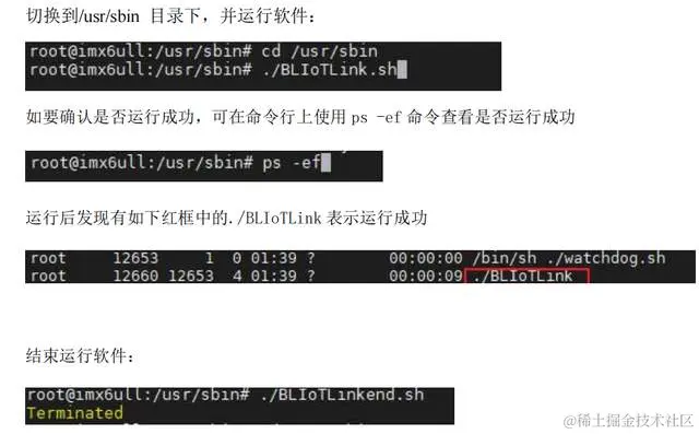 切换到 /usr/sbin 目录下,该目录下安装后有启动文件 BLIoTLink.sh 和结束软件运