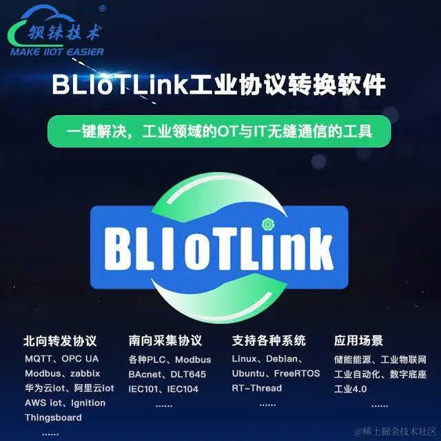BLIoTLink 上行支持:Modbus TCP、MQTT、OPC UA、BACnet IP、华为云 IoT、