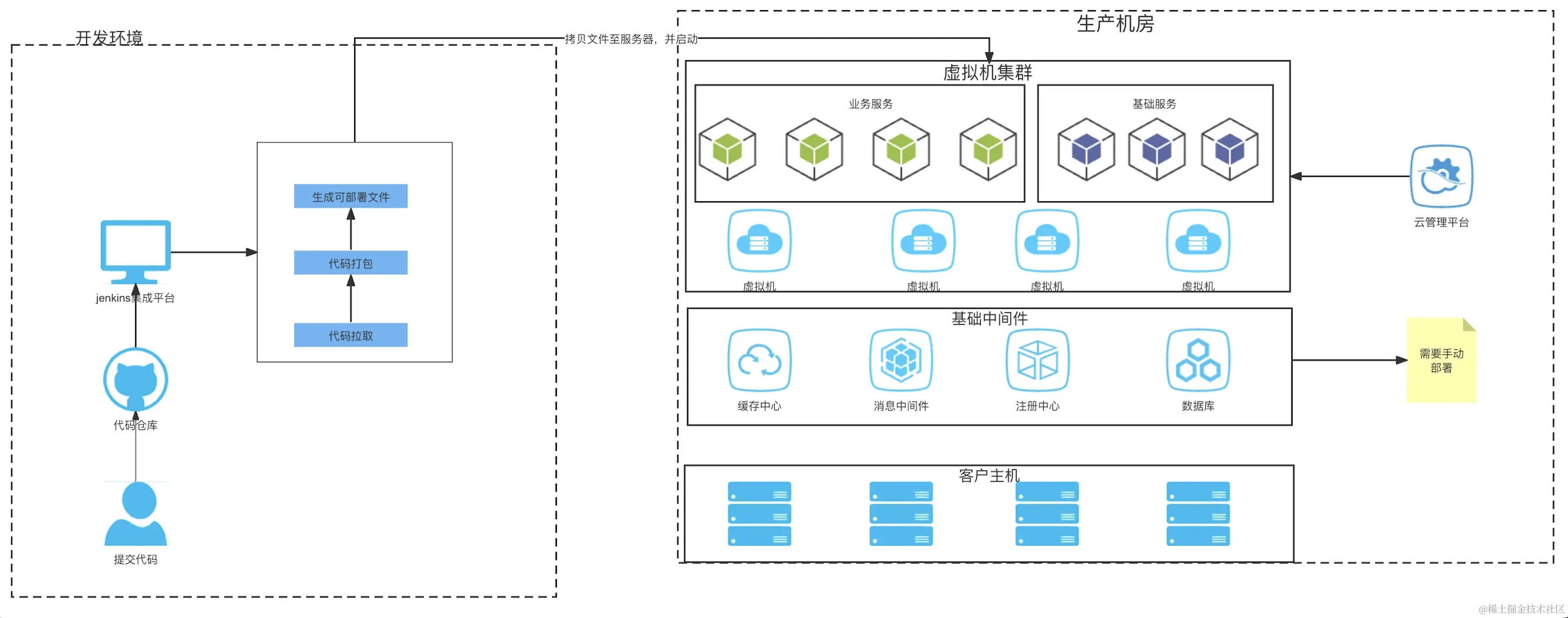 物理机部署在计算机早期阶段比较盛行,因为那时候虚拟化和云计算等技术还没有普及,物理机是主要的部署选择。