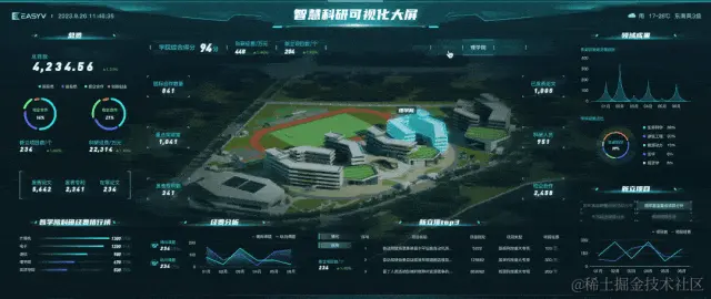 基于此,易知微特推出智慧科研可视化大屏,该模板针对7类学科院校,集成新立项、科研经费、领域成果等指标,可以帮助科研人员更好地处理和分析科研数据。可以应用于教育科研等场景。