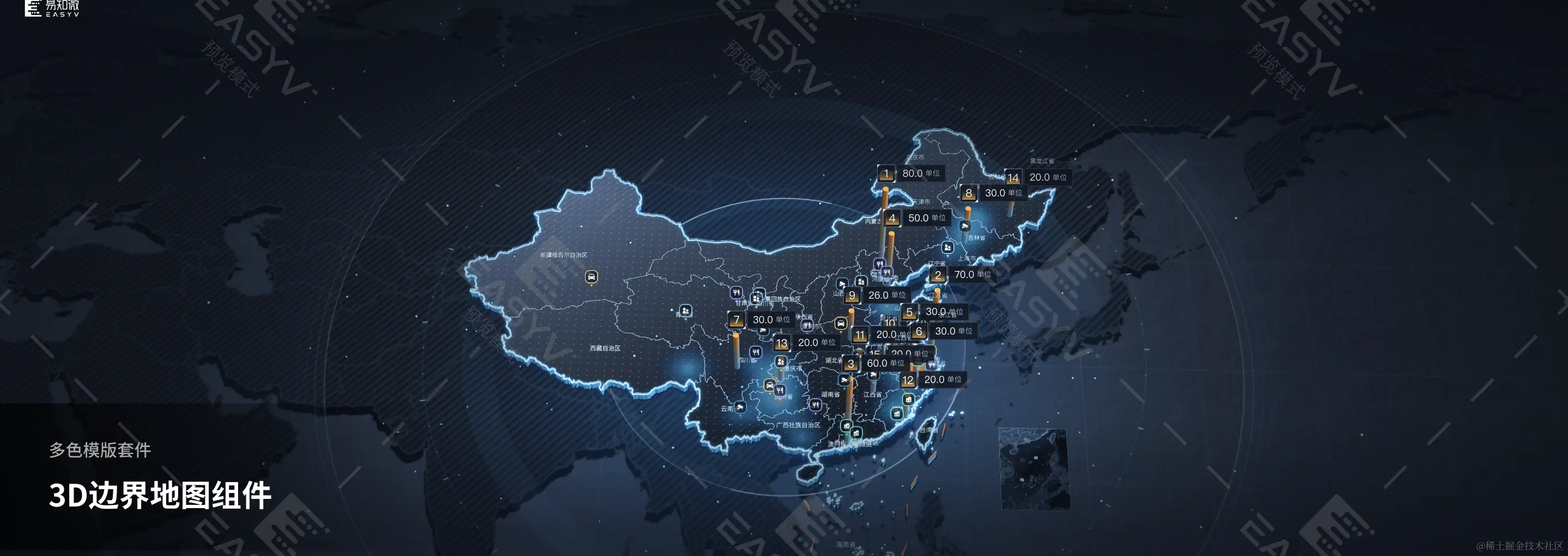 现如今,数据可视化已成为信息传递的重要手段之一。在这样一个信息爆炸的时代,向人们传达正确的信息显得尤为重要。为此,可视化主题套件应运而生,提供了一种多样化的、可视化的方式来展示数据。不同的主题套件能够适应不同的信息传递场景,满足人们的需求。这种套件让人们更容易理解和分析数据,同时也为许多行业提供了多方面的帮助,如医疗、金融、科学、商业等,同时也可以帮助大屏搭建者减少大屏的“拼凑感”,省去设计流程。可以说,这些套件已经成为了数据转化中不可或缺的一部分,随着技术的进步和各行业应用的深入,可视化主题套件的应用前景更加广阔。