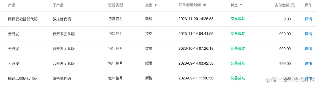 这里可以看到,套餐最高的级别是999的那个,我们其中一个小程序已经购买了最贵的套餐,现在就遇到这个问题,超出套餐的部分价格会变得很贵。
