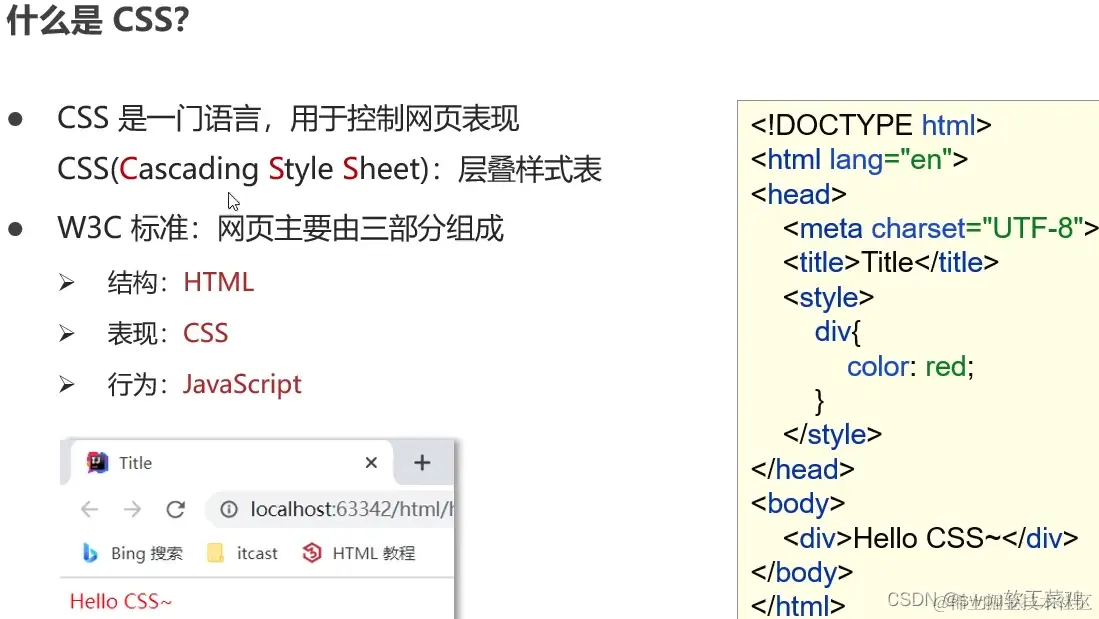 <div style="color: red">Hello CSS 内联用的非常少</div>