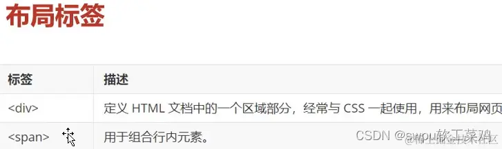 <div>:块级标签 沾满整行 <span>:行内标签 只占内容空间