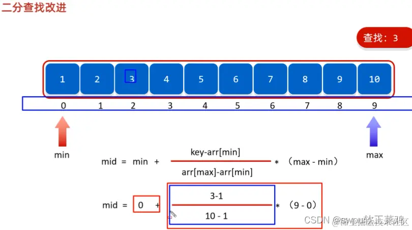 mid=low+(key-a[low])/(a[high]-a[low])*(high-low),