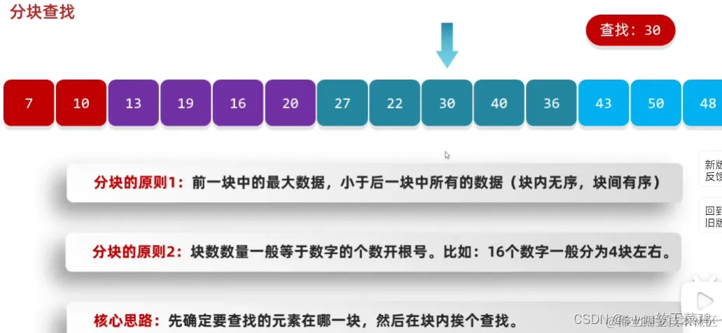 编辑1.2插值查找 (二分查找改进版) (在黑马笔记中)编辑1.3分块查找编辑