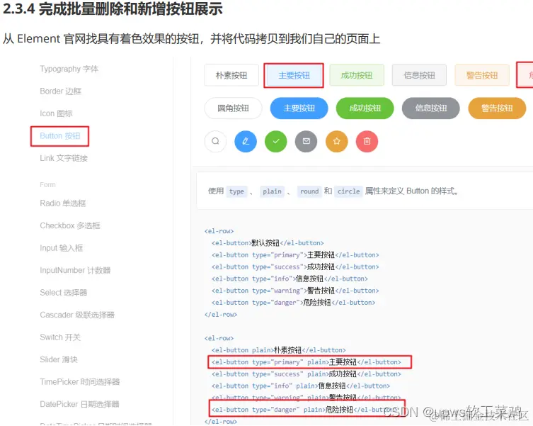 05-Element-常用组件-表格 使用 Element 整体的思路就是 拷贝 + 修改