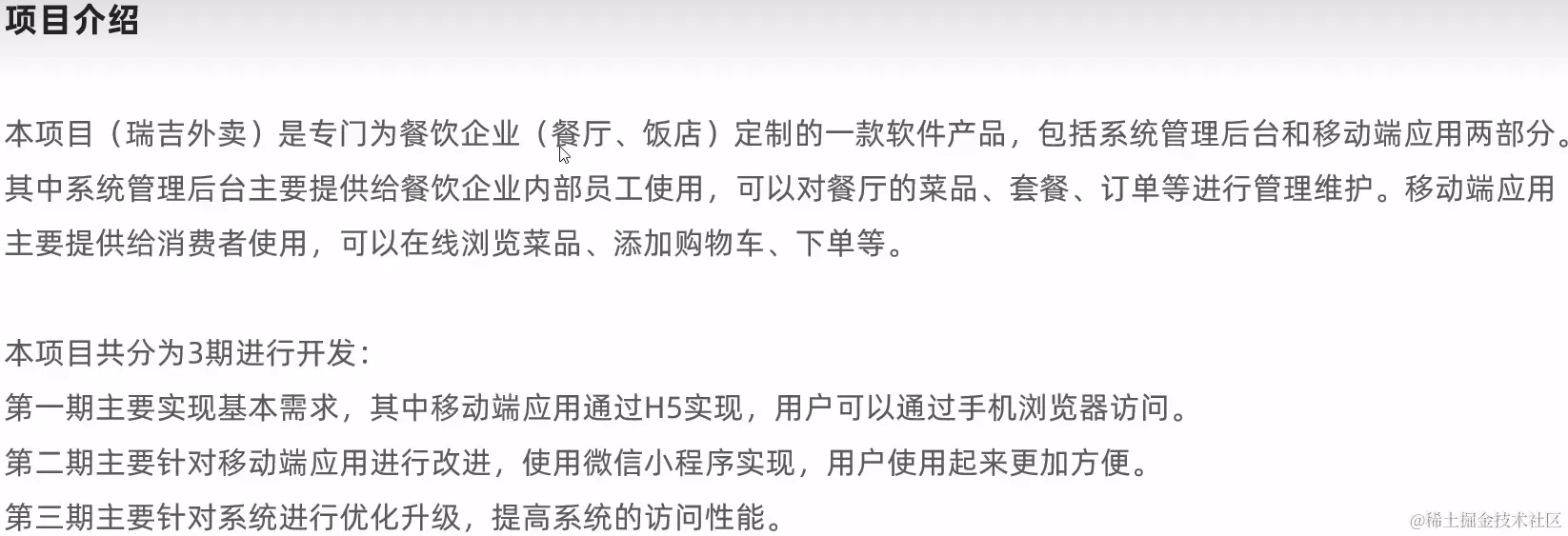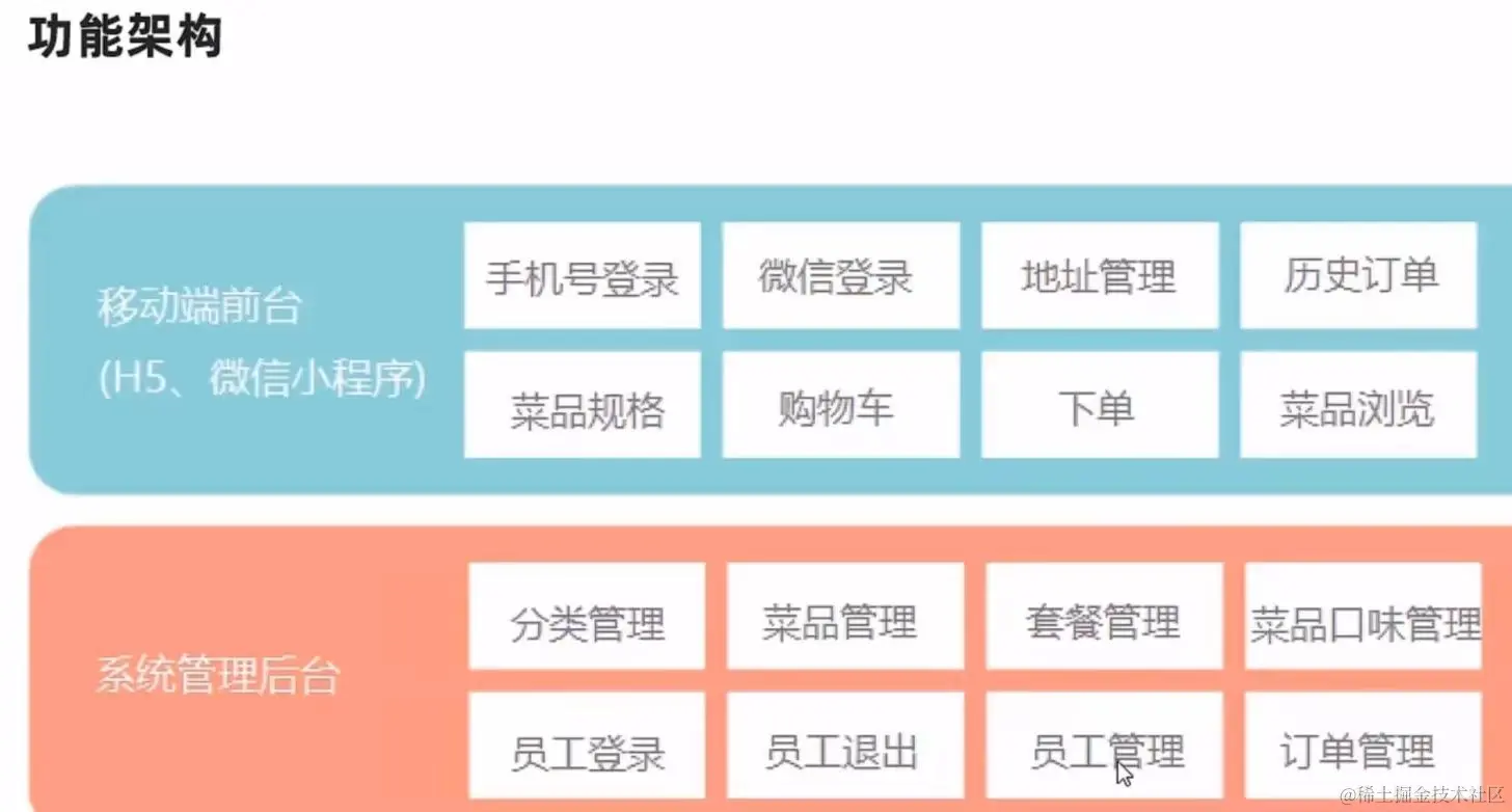 本项目中在构建系统管理后台的前端页面,我们会用到H5、Vue.js、ElementUI等技术。而在构建移动端应用时,我们会使用到微信小程序。