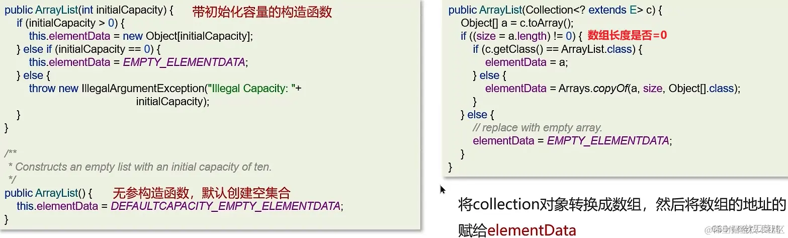 好的,在ArrayList的源码中提供了一个带参数的构造方法,这个参数就是指定的集合初始长度,所以给了一个10的参数,就是指定了集合的初始长度是10,这里面并没有扩容。